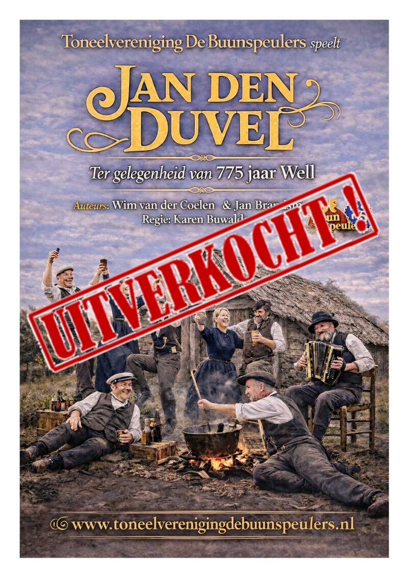 Met dit toneelstuk brengen De Buunspeulers een kleurrijk stukje Wells verleden tot leven; een volksverhaal met een lach en een traan. Het toneelstuk is geschreven door Jan Brandsma en Wim van der Coelen, de regie is in handen van Karen Buwalda. Inspiratie vonden zij in oude anekdotes, vergeelde krantenknipsels en hun eigen fantasie. De voorstelling Jan den Duvel barst van levendige personages, Wells dialect en verrassende wendingen.
